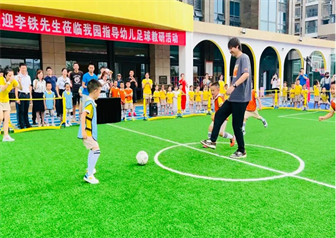 2022年6月21日,北京金色摇篮绵阳高新园第二届“萌芽杯”幼儿足球比赛决赛暨李铁入园指导教研活动成功举办。前中国国家男子足球队主教练李铁莅临活动现场指导并与孩子们亲切互动。高新区社发局教育专干赵清旭出席活动并发表讲话。