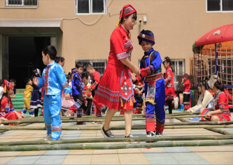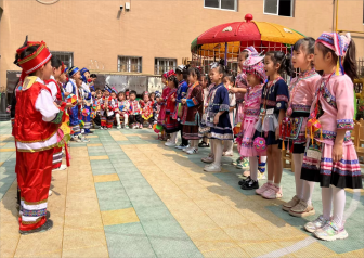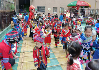 民族民间文化是中华优秀传统文化的重要组成部分,把民族民间文化引进校园,不仅是对民族民间文化的传承和发展,也是我们创建特色校园文化的重要内容。我园通过参与“三月三”民族风情文化中的“对歌”、“跳竹竿舞”、“抛绣球”、“百家宴”等活动,可以弘扬民族文化,陶治个人情操,激发幼儿热爱家乡、热爱民族、热爱生活、奋发向上的精神风貌。让幼儿体验民族文化的乐趣。